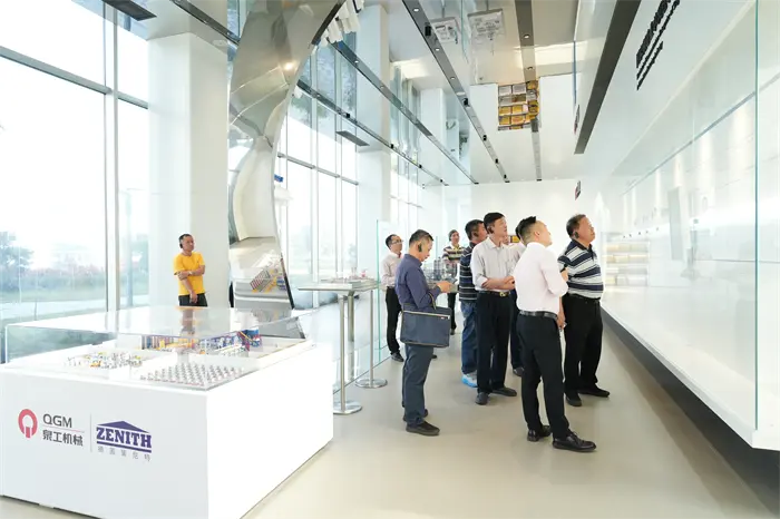 Esimees Lin Boqian ja tema delegatsioon külastasid esmalt Quangong Co., Ltd. arenguajaloo näitusesaali ning graafiliste ekraanitahvlite, videomaterjalide ja füüsiliste eksponaatide kaudu mõistsid nad täielikult ettevõtte võitlust selle loomisest kuni tööstuse juhiks saamiseni. Quangongi eest vastutav isik tutvustas üksikasjalikult uuenduslikke läbimurdeid, mida Quangong Co., Ltd. on telliskivimasinate seadmete valdkonnas teinud enam kui 40 aasta jooksul, ning ettevõtte filosoofiat "käsitöö loob kvaliteedi ja tehnoloogia juhib tulevikku". Esimees Lin Boqian hindas kõrgelt Quangong Co., Ltd. saavutusi tehnoloogilise uurimis- ja arendustegevuse nõudmisel ning tööstuse uuenduste edendamisel.