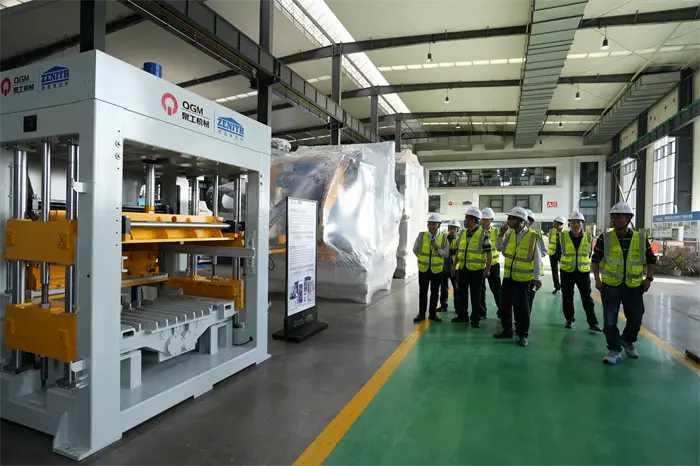 Seejärel liikusid külalised telliskivinäidiste väljapaneku alale ja vaatasid erinevaid kvaliteetseid läbilaskvaid telliseid, sillutistellisi, plokke ja muid QGM-seadmetega toodetud tooteid ning avaldasid suurt huvi ettevõtte "tahkejäätmete taaskasutamise" tehnoloogiliste saavutuste vastu. Telliskivi valmistamise seadmete väljapanekualal kontrollisid esimees Lin Boqian ja tema partei hoolikalt põhiseadmeid, nagu täisautomaatne plokkide vormimismasin ja intelligentne tootmisliin, mille oli iseseisvalt välja töötanud QGM, ning vahetasid kohapeal tehnilisi eeliseid ja tururakenduse väljavaateid. Esimees Lin Bo kinnitas täielikult QGM-i silmapaistvat panust tipptasemel seadmete tootmise ja roheliste ehitusmaterjalide valdkonnas ning rõhutas: "QGM on Quanzhou eraettevõtete uuenduslik mudel. Loodame tulevikus föderatsiooni sillana edaspidigi mängida, edendada tööstusahela koordineeritud arengut ja aidata "Quanzhou nutikal tootmisel" minna üle maailma. Peadirektori asetäitja Fu Huabin vastas, et ettevõte jätkab investeeringute suurendamist teadus- ja arendustegevusse ning teeb koostööd partneritega kõigilt elualadelt, et uurida uusi võimalusi intelligentsete seadmete ja rohelise tootmise integreeritud arendamiseks.