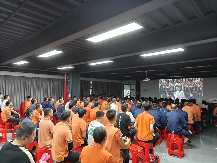 3. september oli kogu Hiina rahva jaoks suure tähtsusega päev. Sellel erilisel päeval juhatasid Fujian Quangong Machinery Co., Ltd. esimees Fu Binghuang ja peadirektor Fu Xinyuan kõik töötajad ettevõtte konverentsiruumis, et vaadata suurejoonelist sõjaväeparaadi ja olla selle põneva ajaloolise hetke tunnistajaks.