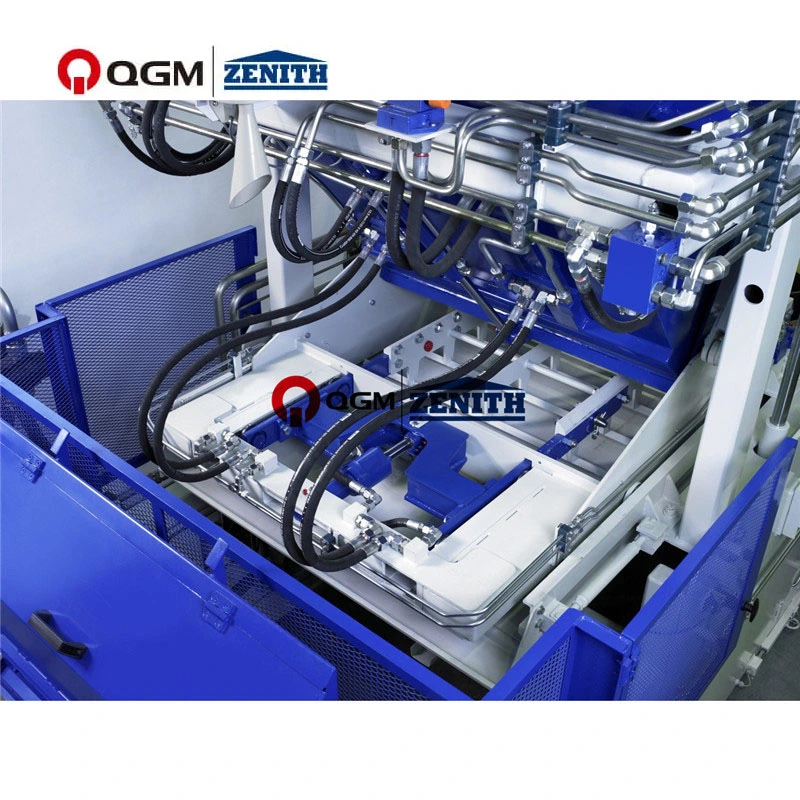 (3) Suure tõhususega vibratsioonisüsteem. Vibratsioonitabel on loodud nelja erineva tootmistaseme jaoks; Vibratsioonilaua ülemine osa on kaheosaline, et saavutada ühtlane jõuülekanne ja optimaalne tihendus; Vahetatav kulumisplaat vibratsioonilaua ülemiste osade kaitseks; Vibratsioonitabel kahe vibraatori vastuvõtmiseks, et saavutada maksimaalne tsentrifugaaljõud 80 kN; 50cm kõrguste plokkide tootmiseks on vormiraam varustatud vibraatoritega.(Võib varustada 2, 4, 6. 8 vibraatoriga vastavalt ploki kõrgusele), Vibratsioonimootorites kasutatakse Servo mootoreid.